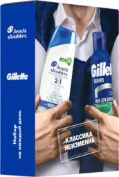 Набор подарочный мужской Head Shoulders и Gillette (Шампунь и бальзам 2в1 против перхоти 200мл+пена д/бритья успокаивающ