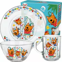 Набор посуды 'Три кота' Цветы (3 предмета, подарочная упаковка), спец-серия, стекло