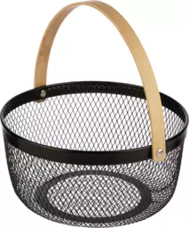 Корзина универсальная металлическая с бамбуковой ручкой, кру