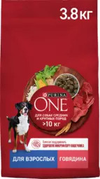 Корм сухой Purina One для взрослых собак средних и крупных пород с говядиной и рисом 3.8кг