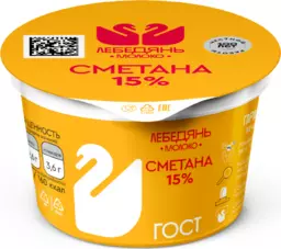 Бзмж Сметана Лебедяньмолоко 15% 170г пл/ст