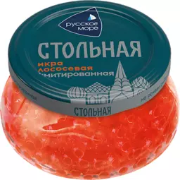 Имитир. пищ. рыбная прод-я. Икра лососевая Стольная имитация пастеризованная Люкс 230г ст/б