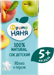 Сок Фрутоняня яблочно-персиковый без сахара, 200мл
