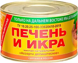 Печень и икра минтая Южморрыбфлот натуральная 240г