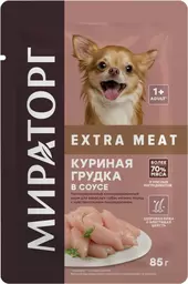 Корм Мираторг Extra Meat с куриной грудкой в соусе консервированный для взрослых собак мелких пород с чувствительным пищеварением, 85г