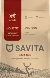 Корм сухой Savita полнорационный беззерновой для взрослых собак с олениной, 1кг