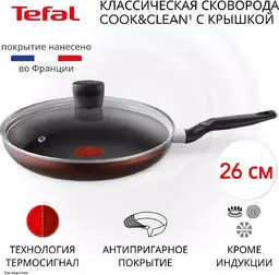 Сковорода Tefal Cook&clean 26 см с крышкой 04233926