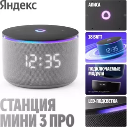 Умная колонка Яндекс Станция Мини 3 Про с Алисой, Zigbee, 18 Вт, серая (Yndx-00059gry)