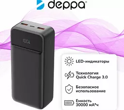 Внешний аккумулятор Deppa Nrg Turbo V3 30000mah, 22.5 Вт, дисплей Black (33670)