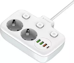 Сетевой фильтр Deppa 2 розетки, 3хusb-a, Usb-c, 2500W, Pd/qc, Зу 20W, 1.5 м, белый (14402)