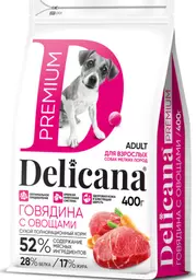 Delicana Premium Сухой корм для собак мелких пород, говядина с овощами, 400 гр.