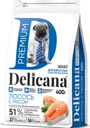 Delicana Premium Сухой корм для собак мелких пород, лосось с рисом, 400 гр.