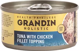 Grandin Holistic Влажный корм (консервы) для взрослых кошек, тунец с топпингом из курицы, 80 гр.