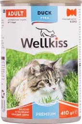 Wellkiss Влажный корм (консервы) для кошек, нежные кусочки с уткой в соусе, 410 гр.