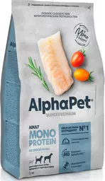 Alphapet Adult Monoprotein Сухой корм для собак средних и крупных пород, белая рыба, 2 кг