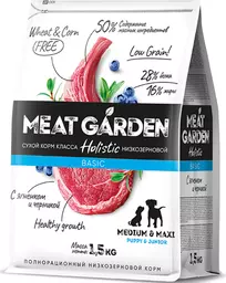 Meat Garden Holistic Сухой корм для щенков средних и крупных пород, с ягненком и черникой, 1.5 кг
