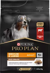 Proplan Duo Delice Сухой корм для взрослых собак средних и крупных пород, с высоким содержанием говядины, 2.5 кг
