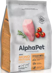Alphapet Monopronein Superpremium Сухой корм для взрослых собак мелких пород, с индейкой, 500 гр.