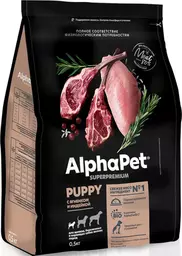 Alphapet Сухой корм для щенков мини пород с ягненком и индейкой, 500 г