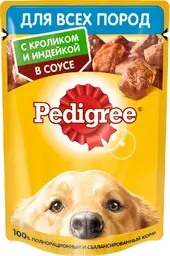 Pedigree Влажный корм (пауч) для взрослых собак всех пород, с кроликом и индейкой в соусе, 85 гр.