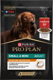 Proplan Влажный корм (пауч) для взрослых собак мелких и карликовых пород, с говядиной в соусе, 85 гр.