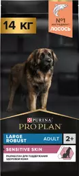 Proplan Сухой корм для взрослых собак крупных пород с мощным телосложением с чувствительной кожей, с высоким содержанием лосося, 14 кг