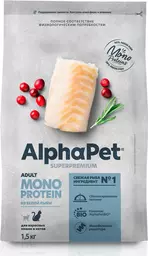Alphapet Adult Monoprotein Сухой корм для взрослых кошек, с белой рыбой, 1.5 кг