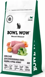 Bowl Wow Sterilized Сухой корм для стерилизованных кошек, с индейкой, курицей и шпинатом, 400 гр.