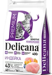 Delicana Premium Сухой корм для кошек с чувствительным пищеварением, с индейкой, 400 гр.