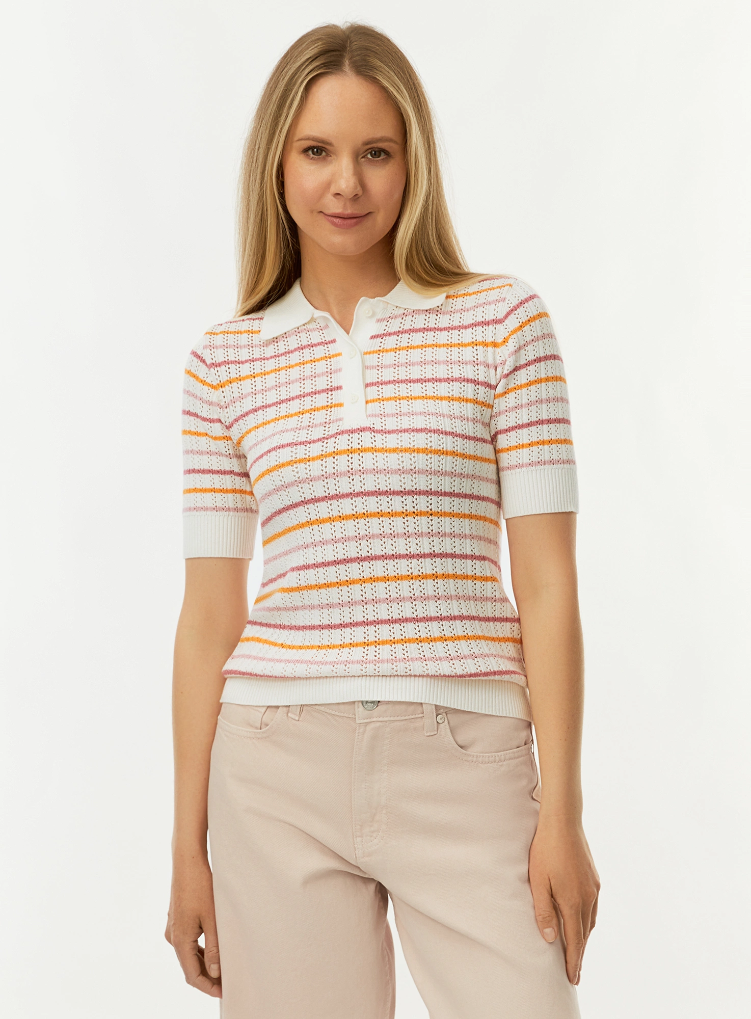 Джемпер-поло ажурной вязки