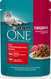Корм влажный Purina One для стерилизованных кошек с говядиной и морковью в соусе, 75г