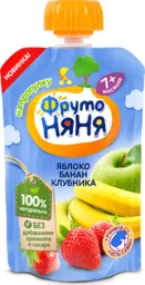 Десерт фруктовый детский Фрутоняня Яблоко, банан и клубника с 7 месяцев, 90г
