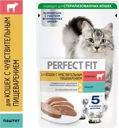 Влажный корм для кошек со вкусом телятины паштет Perfect Fit 75г