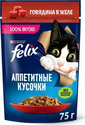 Влажный корм для кошек Felix Аппетитные кусочки с говядиной в желе, 75г