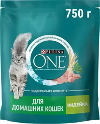 Сухой корм Purina One для домашних кошек с индейкой, 750г