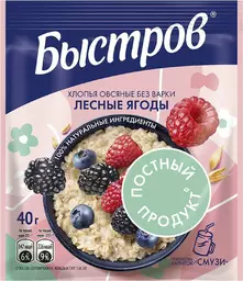 Хлопья Быстров овсяные не требующие варки с лесными ягодами, 40г