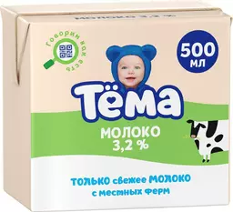 Молоко Тёма детское 3.2% с 3 лет, 500мл