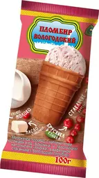 Мороженое Вологодский Пломбир с кусочками брусники и клюквы в вафельном стаканчике 12%, 100г