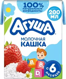 Каша молочная Агуша Укрепляй-ка детская рисовая Клубника-земляника-яблоко с 6 месяцев 2.7%, 200мл