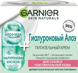Крем для лица Garnier Skin Naturals Гиалуроновый-алоэ для сухой и чувствительной кожи, 50мл