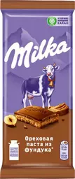 Шоколад молочный Milka с начинкой из ореховой пасты и дробленым фундуком, 80г