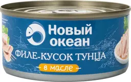 Тунец скипджек филе-кусок в масле Новый Океан, 185г