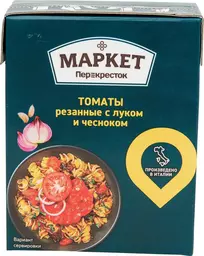 Томаты с луком и чесноком резаные Маркет Перекрёсток, 390г