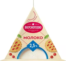 Молоко Вкуснотеево ультрапастеризованное 2.5%, 200мл