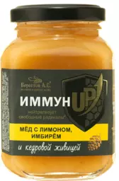 Мёд Берестов А.с. Иммунup с лимоном, имбирём и кедровой живицей 200г ст/б
