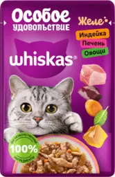 Влажный полнорационный корм Whiskas Особое удовольствие для взрослых кошек желе с индейкой, печенью и овощами, 75г