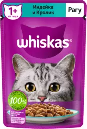 Корм Whiskas для взрослых кошек желе Индейка и кролик , 75г