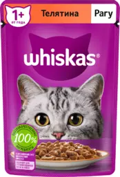 Корм Whiskas для взрослых кошек рагу Телятина и язык , 75г
