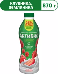 Бзмж Биойогурт питьевой Актибио клубника/земляника 1.5% 870г