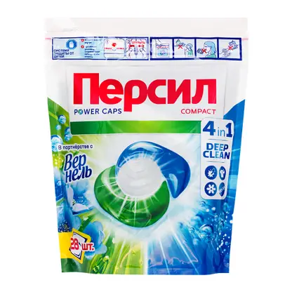 Капсулы для стирки Персил Пауэр Капс Свежесть от Вернель 4в1 для белого белья 28шт